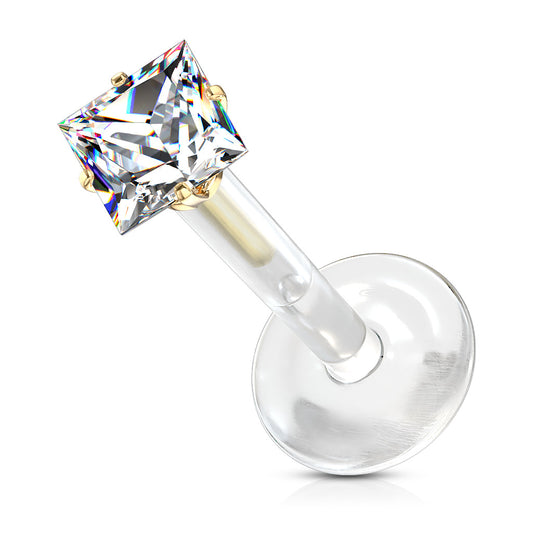 14Kt Gold 2mm CZ Top Screw Stud 20g