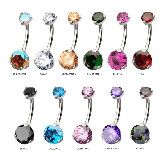 3 Prong 5mm / 8mm Round Gem Titanium Navel