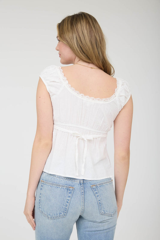 Striped Short Sleeve Top Wtih Lace Trim