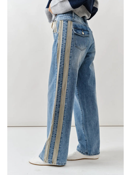 Denim Wide Leg Opening Plus Size Pants With Draw String