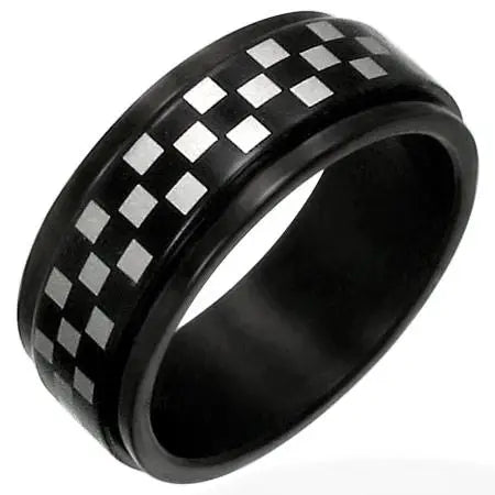 Matte Stainless Steel & Black IP Quilt Ring Size 11