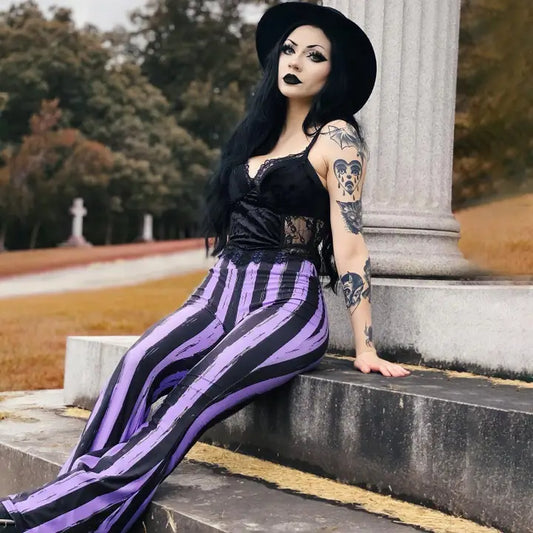 Rust Striped Barrel Denim Pants With Eyelet Waist