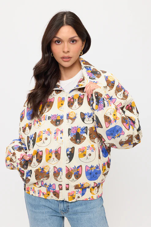 AgotadoFloral Crown Cats Print Jacket