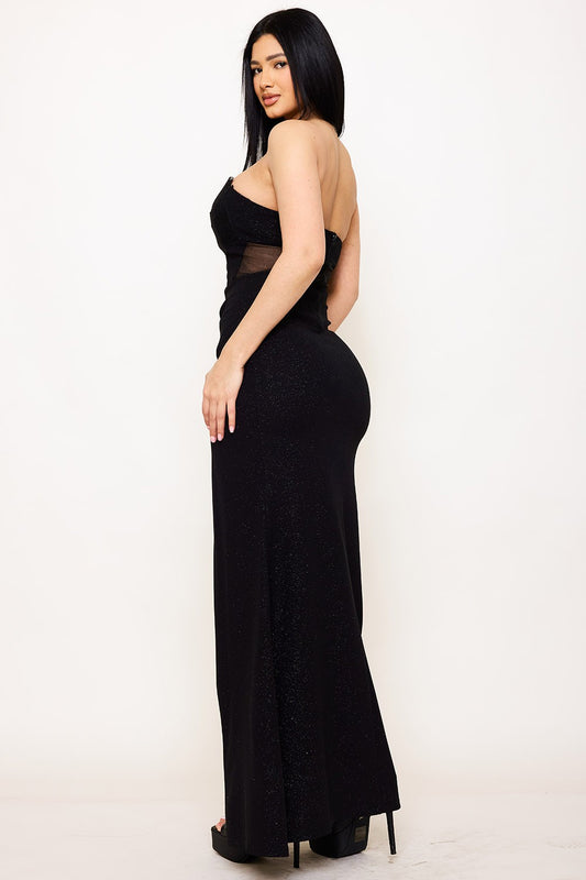 Glitter Power Mesh Ruffle Back Maxi Dress