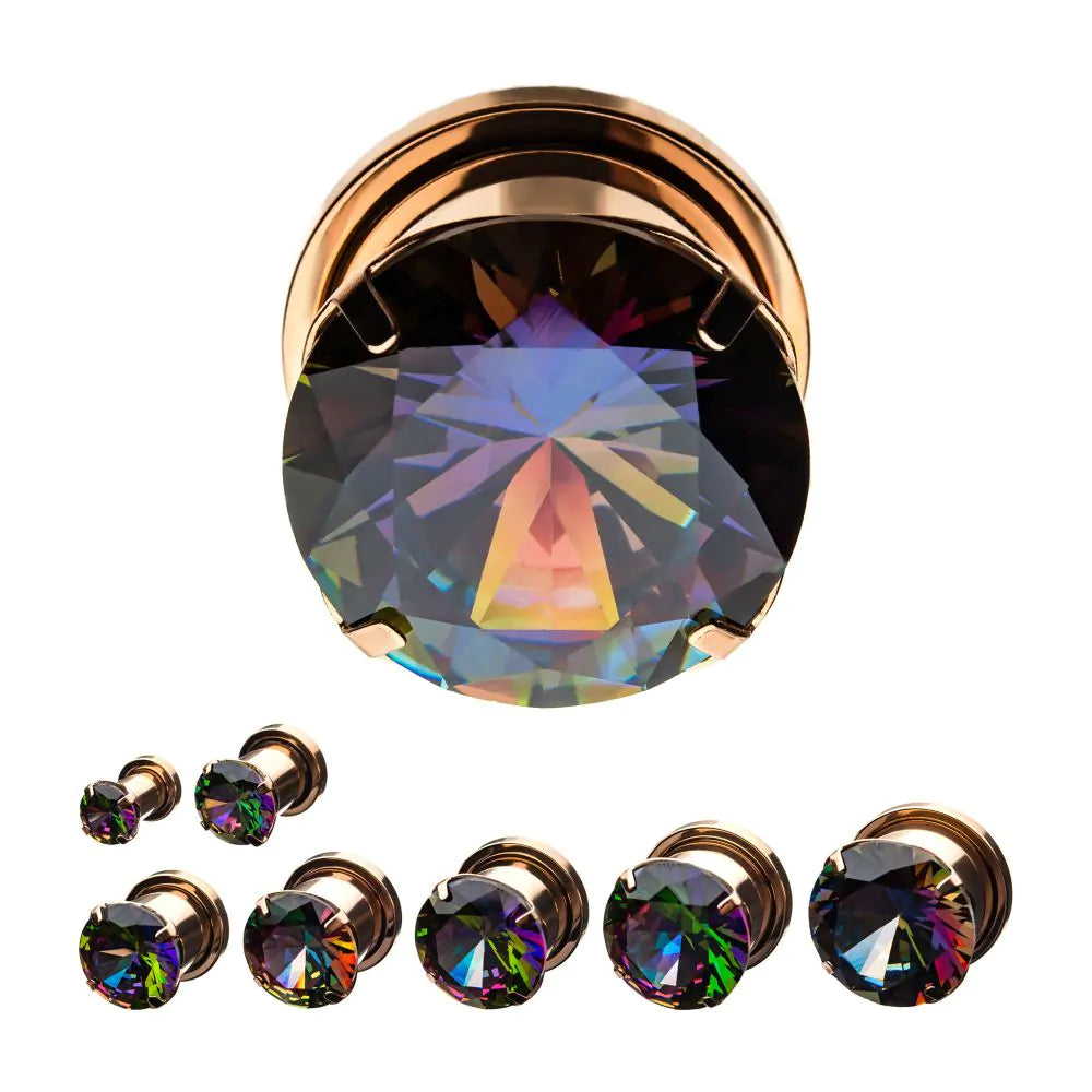 Surgical Steel Screw Fit Prong Set Clear CZ Plugs.