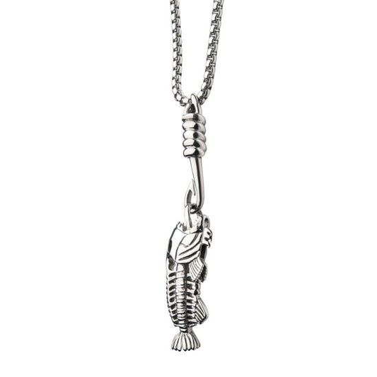 Polished Steel Fishbone Pendant with Hook & 24" Box Chain