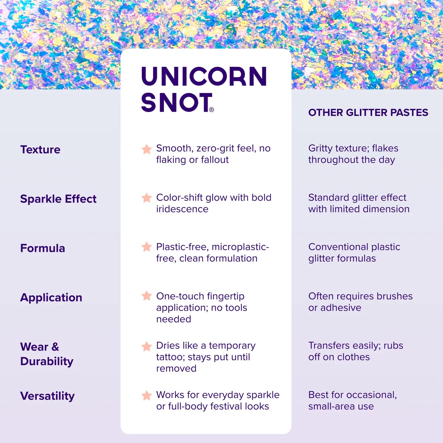 • Materials Used: Long-wear glitter paste formula